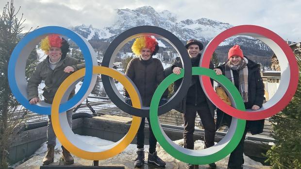 Aiko Hattermann und sein Meppener Kumpel Janko Kevelaer erlebten tolle Wettkämpfe und trafen Stars, die Hattermanns Fahne signierten. Darauf hatte einst schon Laura Dahlmeier unterschrieben.