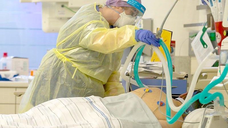 Eine Krankenschwester betreut einen Covidpatienten, der künstlich beatmet wird. Ein von der Weltgesundheitsorganisation (WHO) bislang empfohlener Antikörper-Cocktail hilft nach neuen Studien nicht bei Corona-Patienten, die mit der Omikron-Variante infiziert sind. Foto: Thomas Banneyer/dpa