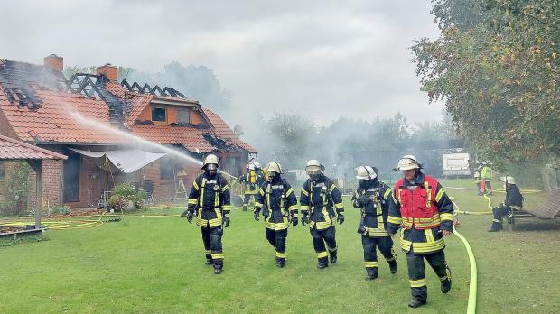 Rund sieben Stunden bekämpften die Einsatzkräfte das Feuer, das das Haus komplett zerstörte. Ein Feuerwehrmann wurde bei den Löscharbeiten leicht verletzt. In der Nacht auf Donnerstag mussten die Feuerwehrleute abermals ausrücken: Die Flammen waren erneut, wohl durch ein Glutnest, entfacht.
