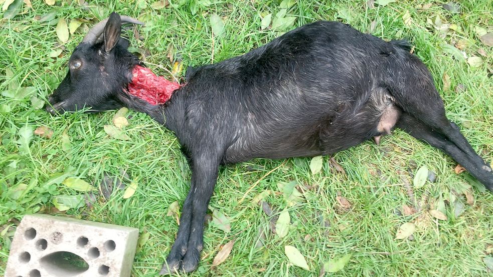 Eine von insgesamt fünf toten Ziegen auf der Weide in Aschendorf. Foto: Schade