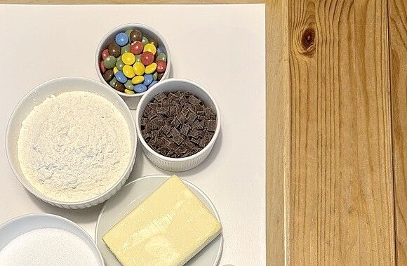 In einer zweiten Schüssel Mehl, Natron und Salz vermengen und die Mehlmischung zur Buttermischung geben. Ab jetzt heißt es: Nicht zu wild! Am besten mit einem Löffel oder der niedrigsten Stufe der Küchenmaschine das Mehl unterheben, bis man gerade kein Mehl mehr sieht. Danach die Schokostücke und -Linsen vorsichtig unterheben.