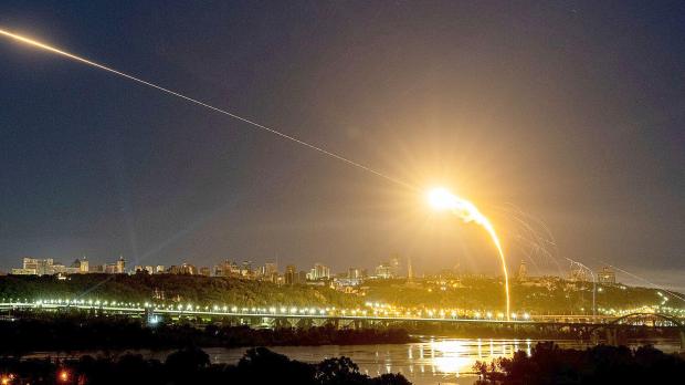 Die ersten Wellen der unbemannten Flugkörper waren zuvor bereits im Osten von der Flugabwehr ins Visier genommen worden. Vielerorts hallte der Lärm von Explosionen durch die Nacht.