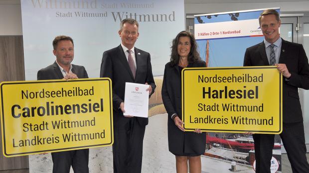 Dr. Norbert Hemken überreichte Kurdirektor Kai Koch das offizielle Thalasso-Zertifikat für Carolinensiel-Harlesiel. Auch das Nordseeheilbad Borkum wurde im Rahmen des niedersächsischen Bädertages mit dem Thalasso-Qualitätssiegel ausgezeichnet.