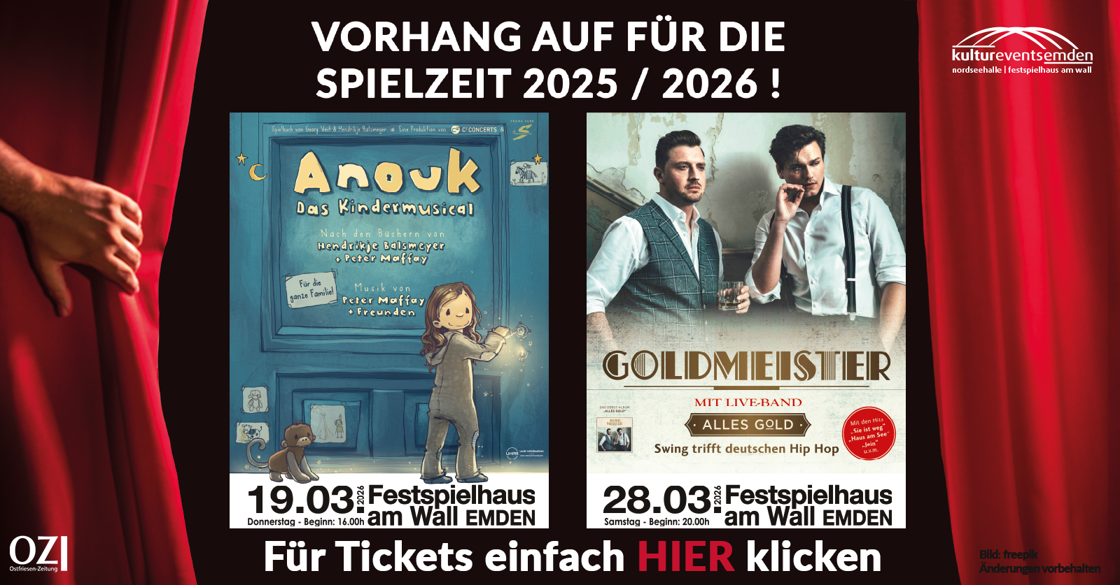 Unter dem Motto „Erleben, entdecken, genießen“ lädt die Messe „Impulse“ am 14. und 15. März 2026, jeweils von 11 bis 17 Uhr, in die Sparkassen-Arena in Aurich ein. Von innovativen Produkten und kreativen Dienstleistungen bis hin zu besonderen Angeboten für Kulinarik, Handwerk, Wohnen und Leben sowie Gesundheit, Feiern und Urlaub gebe es jede Menge zu entdecken, schreiben die Veranstalter. Tickets gibt es für 5 Euro im Online-Vorverkauf und an der Tageskasse. Kinder und Jugendliche bis 14 Jahre haben freien Eintritt.