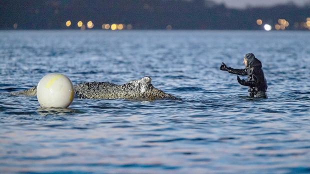 Man könne den Wal auch bewegen und motivieren. „Einmal hat er gemerkt, „okay hier wird’s tiefer, ich hab‘ Bock mal zu starten“.“ Das stimme ihn hoffnungsvoller als er es zu Beginn gewesen sei, sagte Lehmann. „Weil er hat tatsächlich wirklich Bock, und die Motivation ist da.“ Ob Wal, Hund oder Pferd - man merke, wenn sich das Tier bewege oder es versuche.