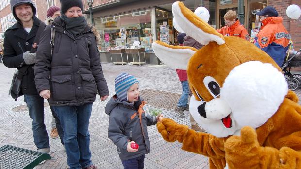 Dass er das Ganzkörperkostüm anziehe, forderten seine Enkelkinder jetzt schon ein, sagte der in Bochum aufgewachsene Künstler. Er verstecke zu Ostern auch gerne Eier für die Kinder – zweimal am Tag, „weil der Osterhase kommt immer zweimal.“