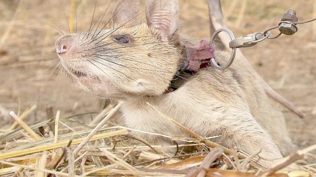 „Die Tiere sind stark futtermotiviert“, fügte er hinzu. Belohnt würden sie bei der Arbeit im Feld vor allem mit Bananen und Erdnüssen. „Die Ratten arbeiten in der Regel gern, begrüßen ihre Betreuer morgens enthusiastisch und zeigen hohe Einsatzbereitschaft“, betonte der Experte. Eine einzelne Ratte kann dabei laut Apopo ein Gebiet von der Größe eines Tennisplatzes in rund 30 Minuten absuchen. Ein Mensch mit Metalldetektor braucht dafür bis zu vier Tage.