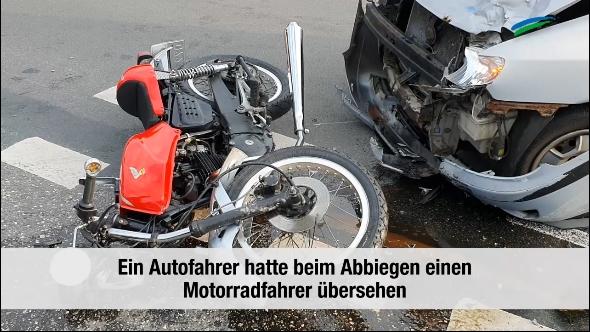 Ein 71 Jahre alter Mann ist am Mittwochabend bei einem Unfall in Moordorf schwer verletzt worden. Ein Autofahrer übersah den Motorradfahrer beim Abbiegen. An beiden Fahrzeugen entstand Totalschaden.