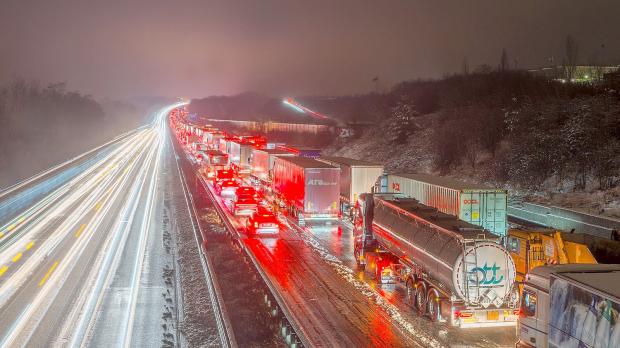 Nach heftigen Schneefällen ist die A3 wieder frei. Und auch auf anderen Autobahnen in der Region entspannt sich die Lage in der Nacht.