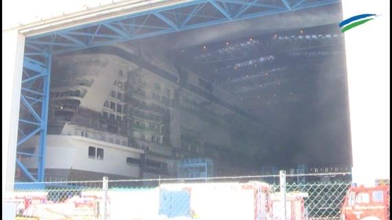 Luxusliner auf der Meyer-Werft brennt